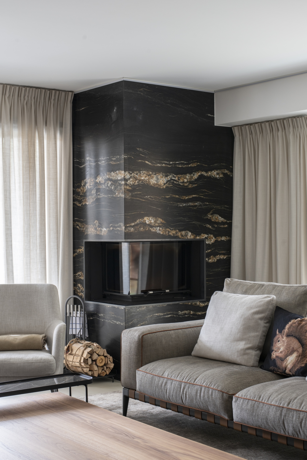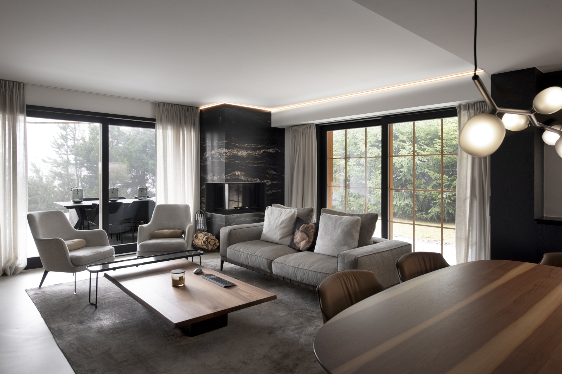 Aménagement d'un appartement Type de mobilier fournis : Chaises, table, canapé, rideaux, luminaires, ...